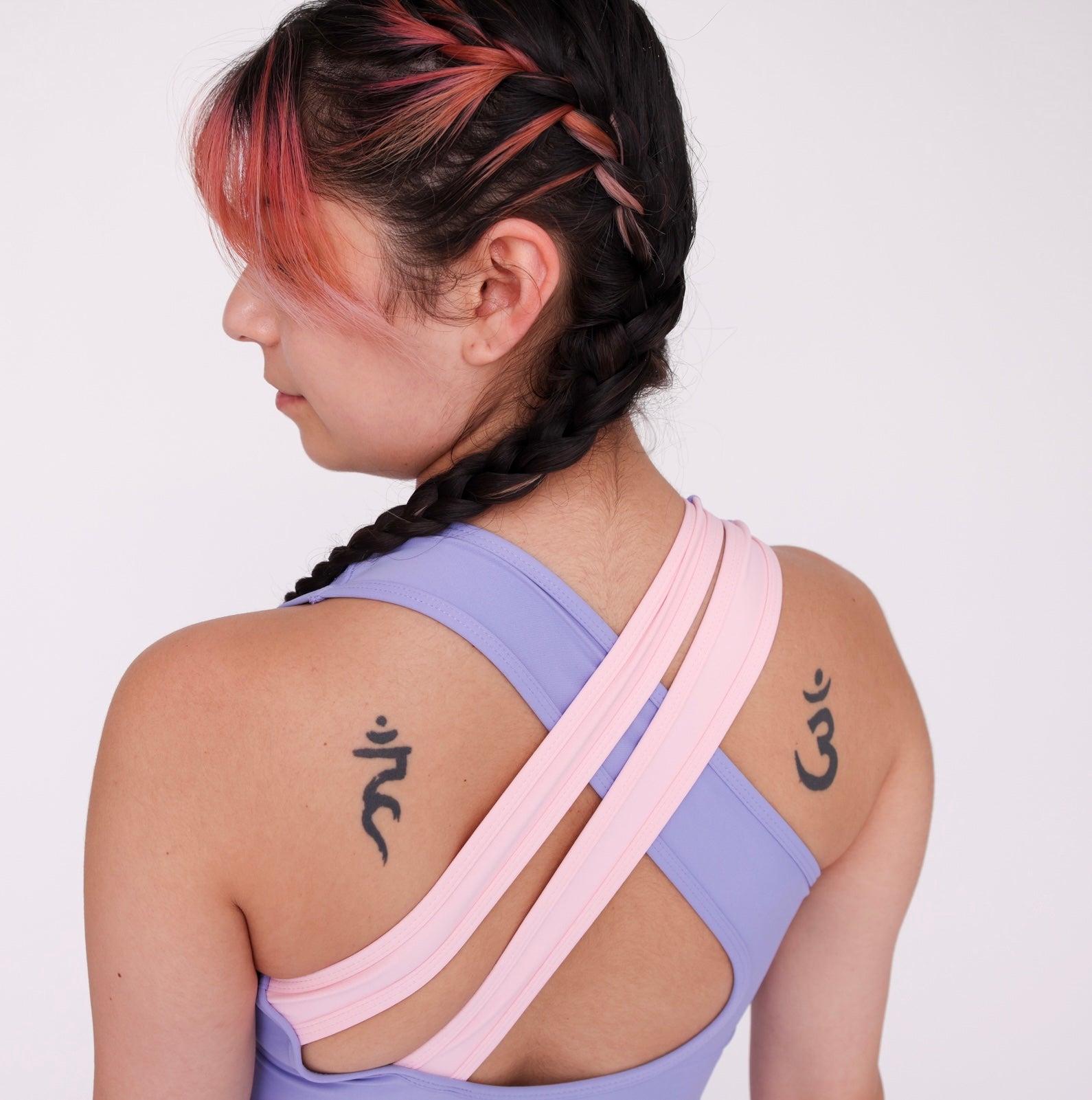 We have created a single layer leotard with a double layer bust support, making it easy for everyone to feel comfortable not wearing a bra. This new design has a beautiful back featuring baby pink straps, pinching in the front creating a beautiful neck line and our iconic high cut leg.