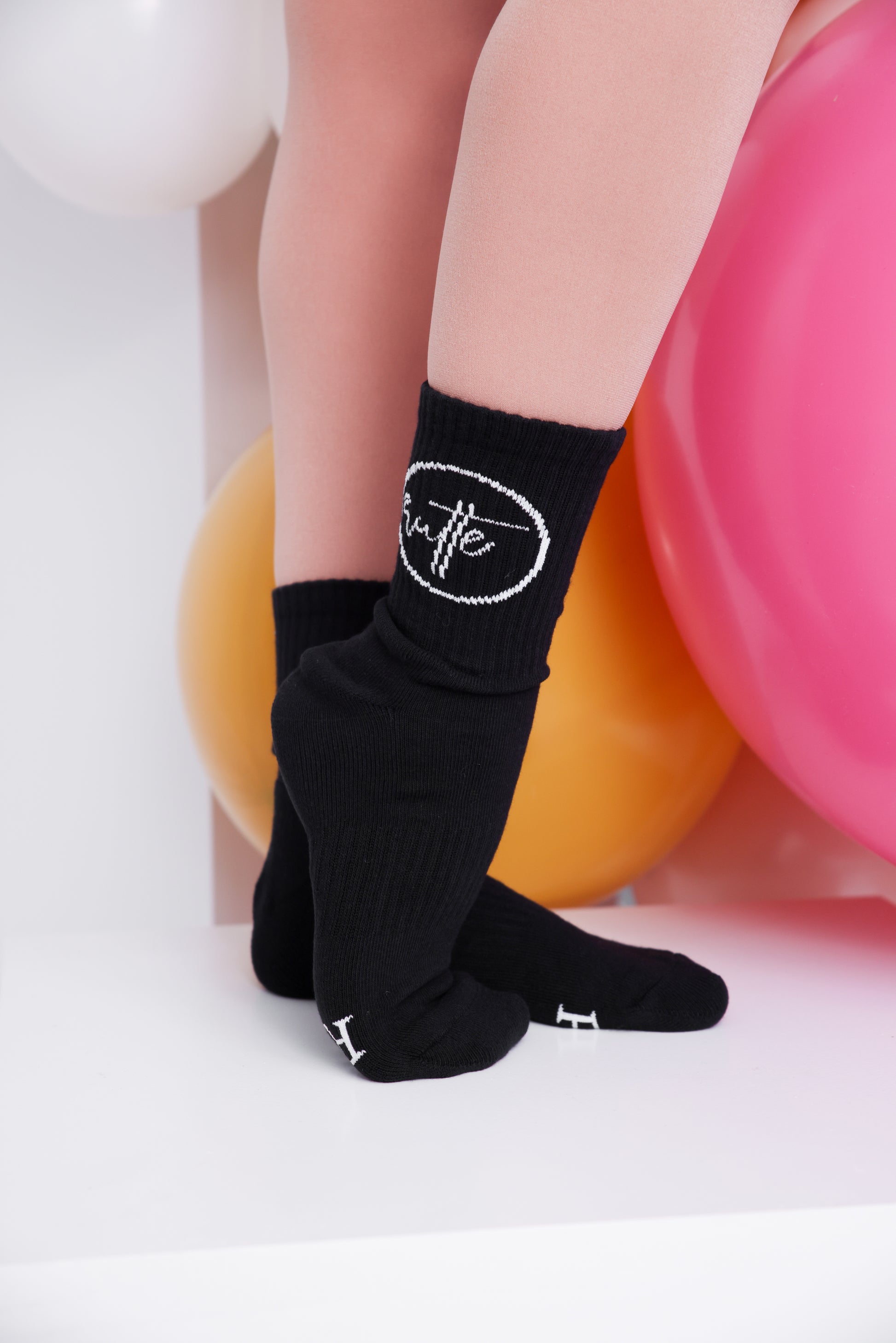 Our one size fits all socks were design to have a compressive arch support and ankle support. These socks are on the thicker side for extra protection on the feet, and we hope our socks make your dancing time more comforting.