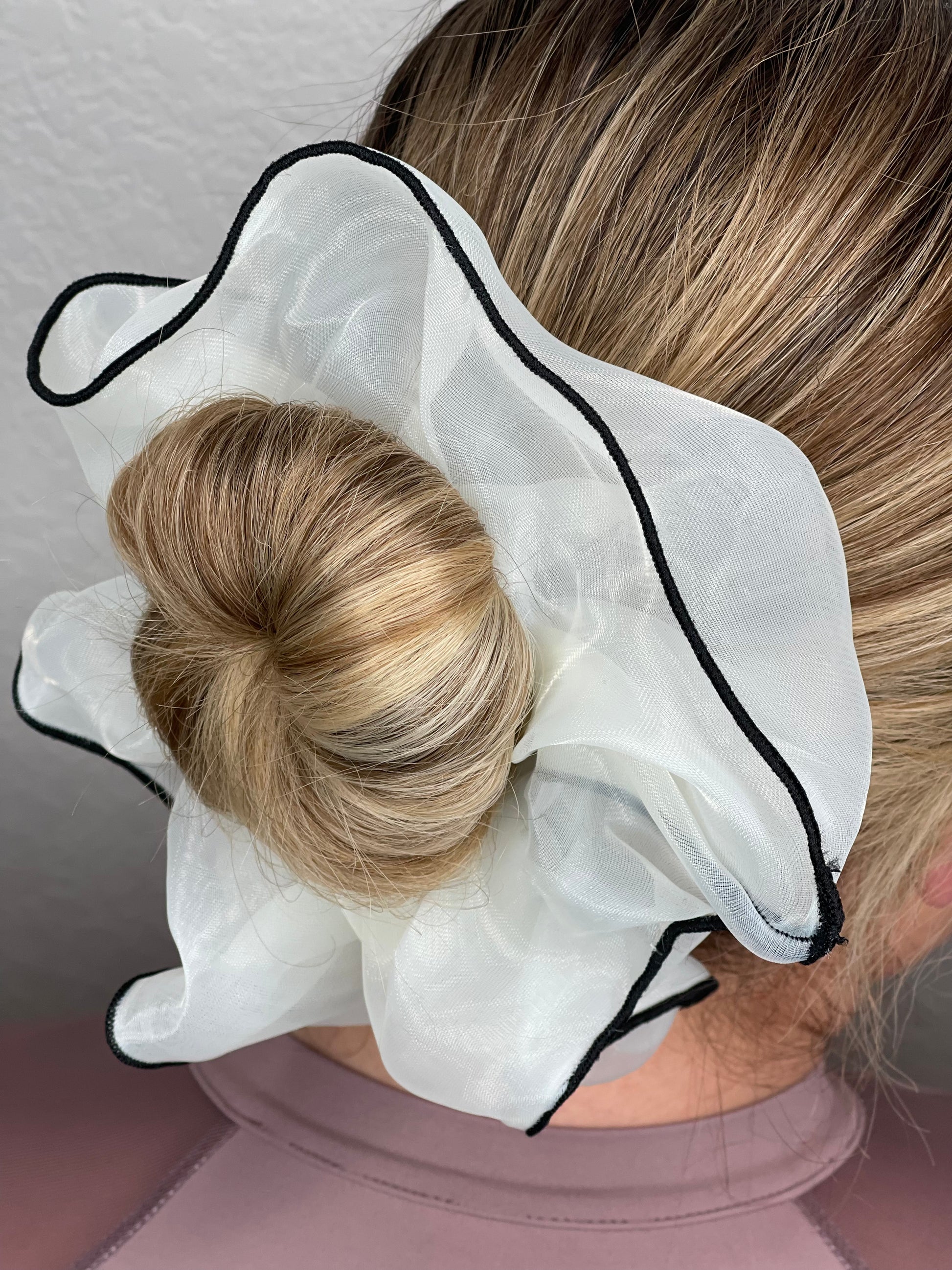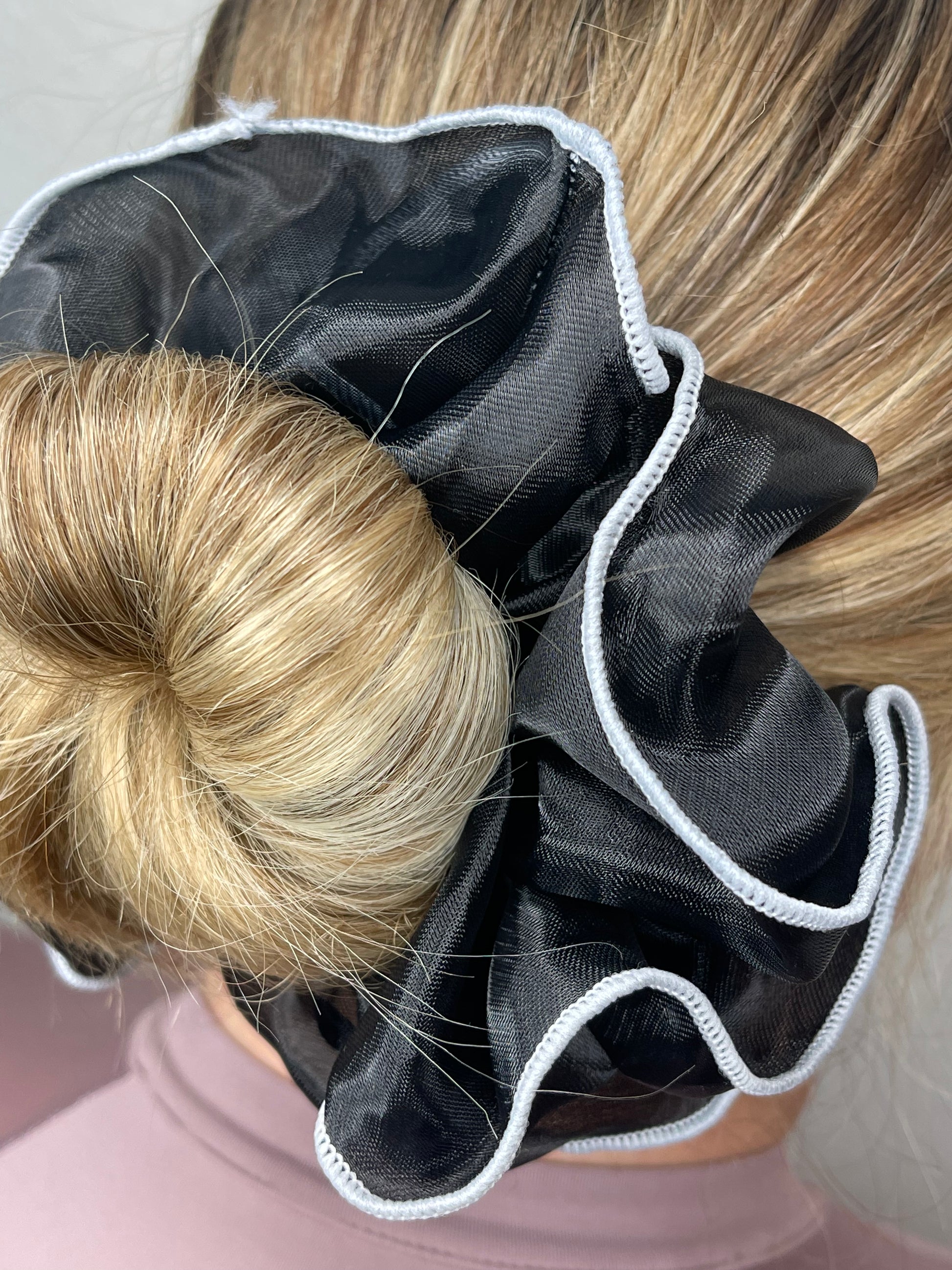 Our scrunchies are made out of satin with a beautiful out line for an extra pop. These are made for extra stretching and strong elastic, our scrunchies come in three colors, perfect to match with your leotards and looks.